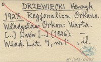 DRZEWIECKI Henryk 1927 Regjonalizm Orkana. Władysław Orkan: Warta. [...] Lwów [...] (1926).