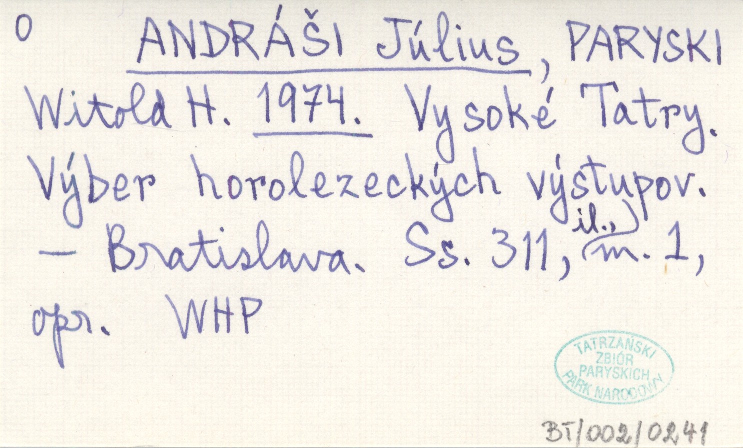 Projekt Digitalizacja fiszek z Bibliografi± Tatr i Podtatrza Witolda Henryka Paryskiego jest finansowany ze ¶rodków Ministra Kultury i Dziedzictwa Narodowego oraz Tatrzańskiego Parku Narodowego.