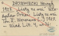 DRZEWIECKI Henryk 1927 "Listy ze wsi". Władysław Orkan: Listy ze wsi. Tom II. Warszawa [...] 1927.