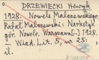 DRZEWIECKI Henryk 1928 Nowele Malczewskiego. Rafał Malczewski: Narkotyk gór. Nowele. Warszawa [...] 1928.