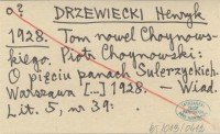 DRZEWIECKI Henryk 1928 Tom nowel Choynowskiego. Piotr Choynowski: O pięciu panach Sulerzyckich. Warszawa [...] 1928.