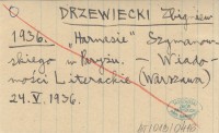 DRZEWIECKI Zbigniew 1936 "Harnasie" Szymanowskiego w Paryżu.