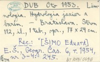 DUB Oto 1953 Limnologia. Hydrologia jazier a barín.