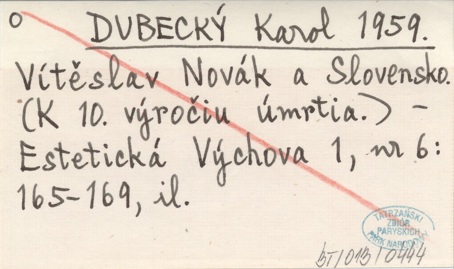 DUBECKÝ Karol 1959 Vítěslav Novák a Slovensko. (K 10. výročiu úmrtia.)