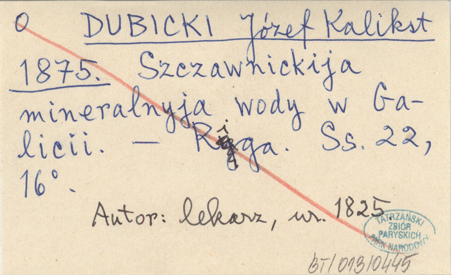 DUBICKI Józef Kalikst 1875 Szczawnickija mineralnyja wody w Galicii.