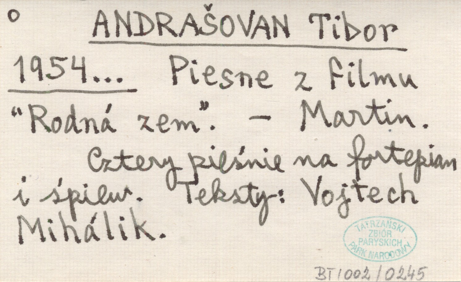 ANDRAŠOVAN Tibor 1954... Piesne z filmu "Rodná zem".