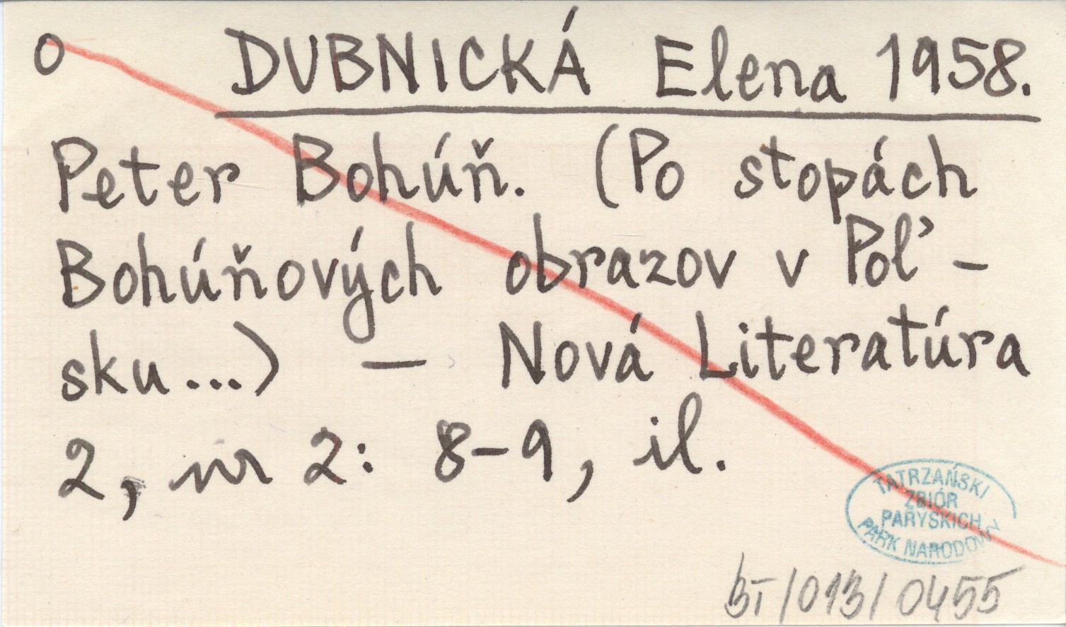 DUBNICKÁ Elena 1958 Peter Bohúň. (Po stopách Bohúňových obrazov v Poľsku...).