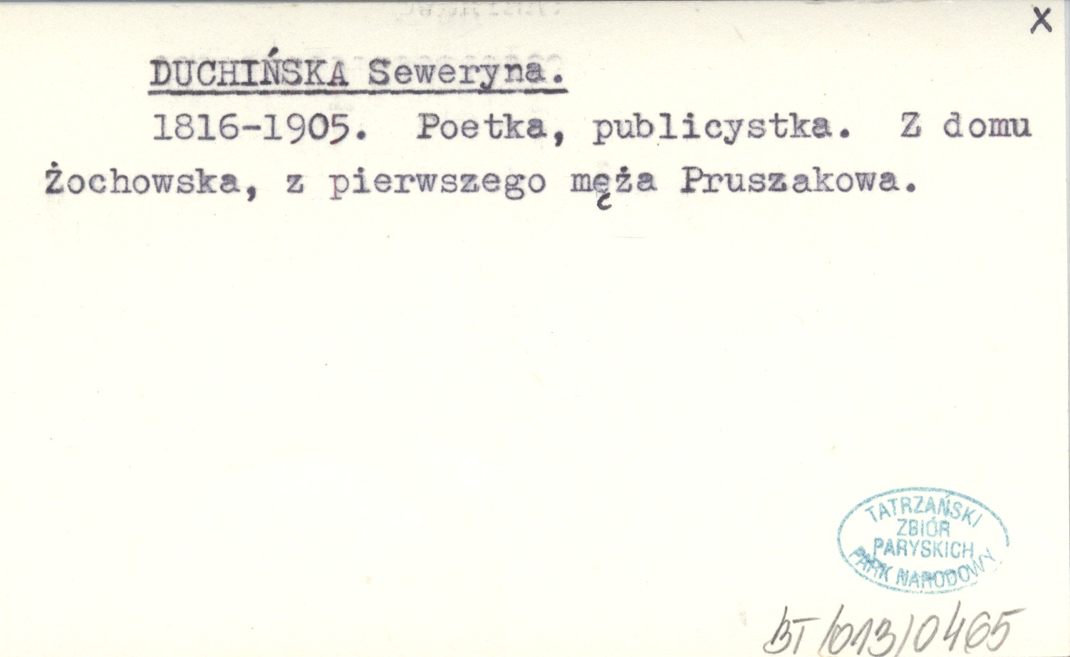 1816-1905. Poetka, publicystka. Z domu Żochowska, z pierwszego męża Pruszakowa.