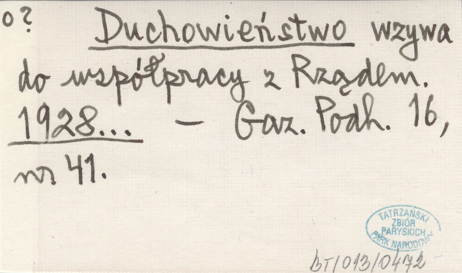 Duchowieństwo wzywa do współpracy z Rządem. 1928...