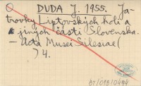 DUDA J. 1955 Jatrovky Liptovských holi a jiných části Slovenska.