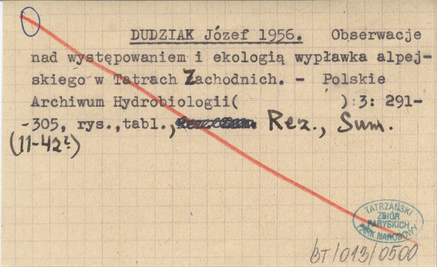 DUDZIAK Józef 1956 Obserwacje nad występowaniem i ekologią wypławka alpejskiego w Tatrach Zachodnich.