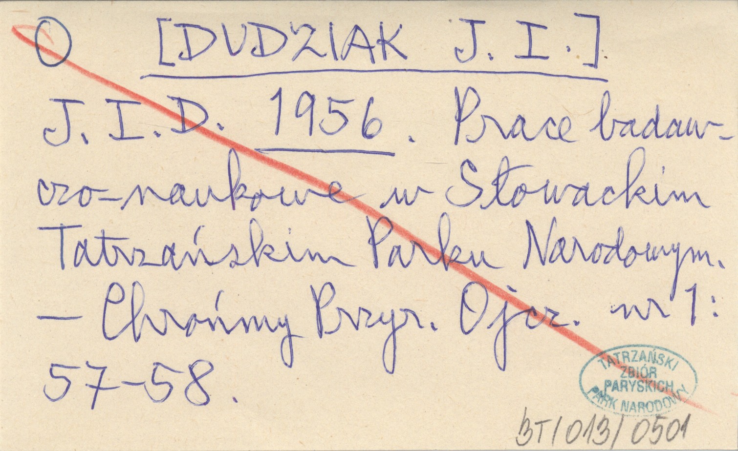 J. I. D. [DUDZIAK J. I.] 1956 Prace badawczo-naukowe w Słowackim Tatrzańskim Parku Narodowym.