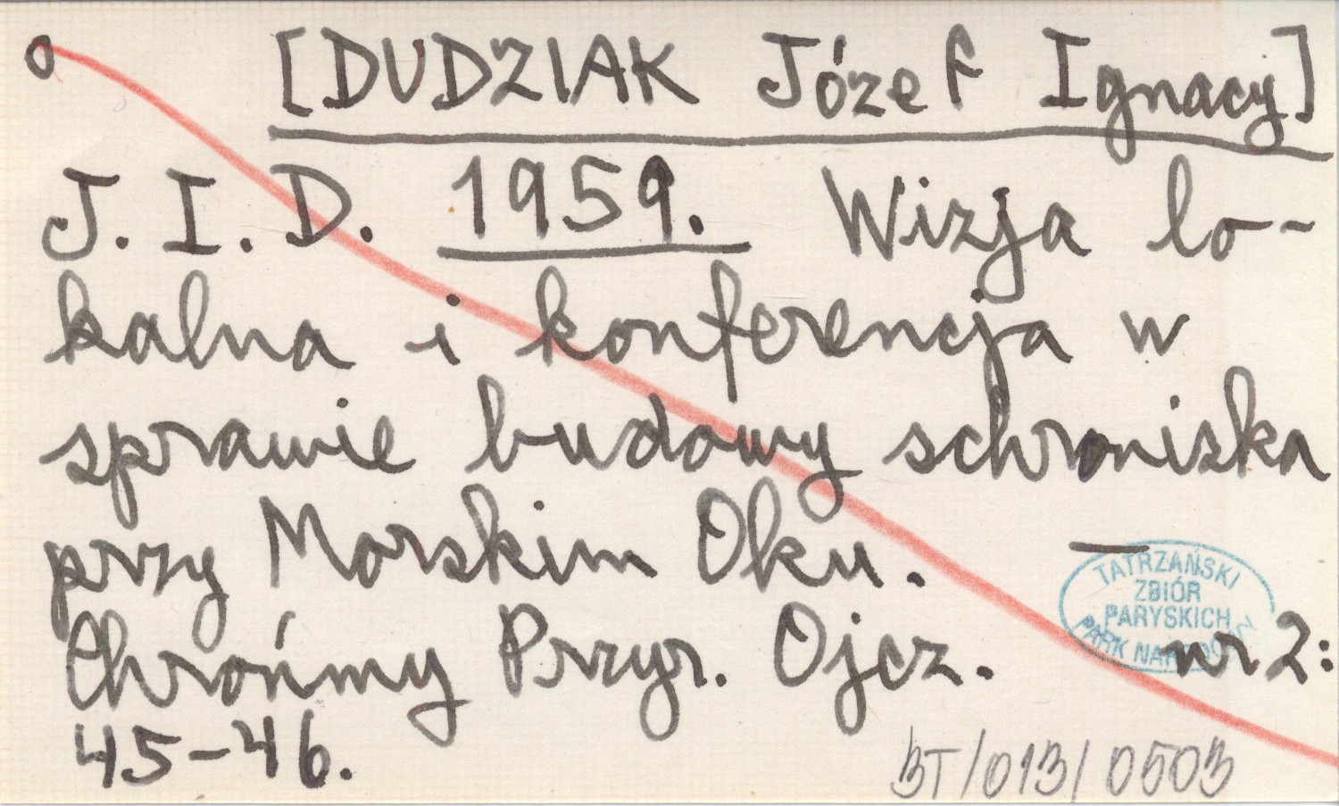 J. I. D. [DUDZIAK Józef Ignacy] 1959 Wizja lokalna i konferencja w sprawie budowy schroniska przy Morskim Oku.