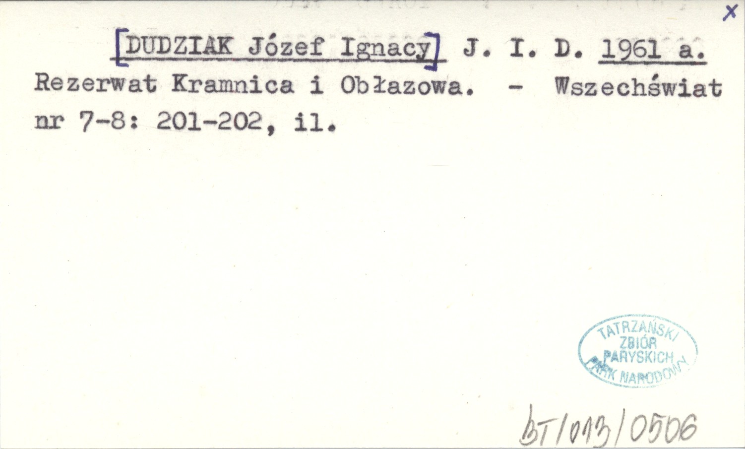 J. I. D. [DUDZIAK Józef Ignacy] 1961 a Rezerwat Kramnica i Obłazowa.