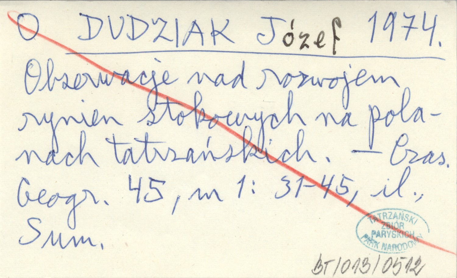 DUDZIAK Józef 1974 Obserwacje nad rozwojem rynien stokowych na polanach tatrzańskich.