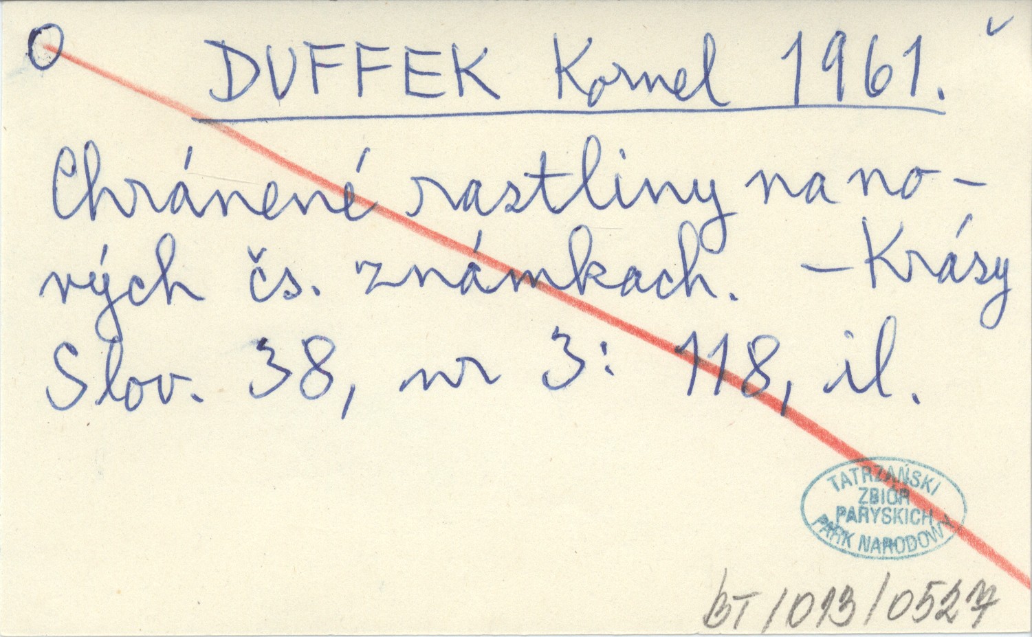 DUFFEK Kornel 1961 Chránené rastliny na nových čs. známkach.