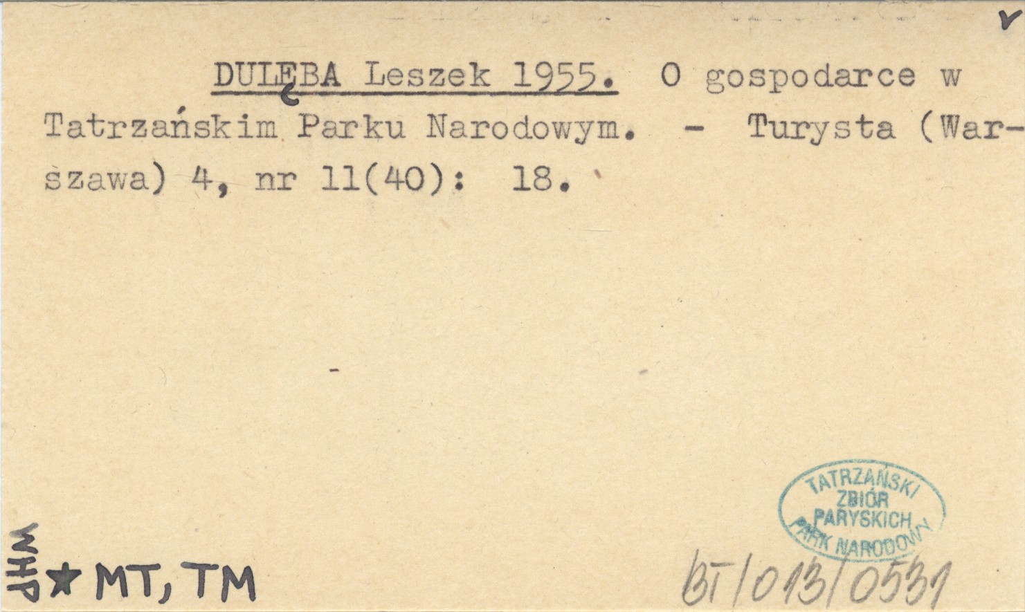 DULĘBA Leszek 1955 O gospodarce w Tatrzańskim Parku Narodowym.