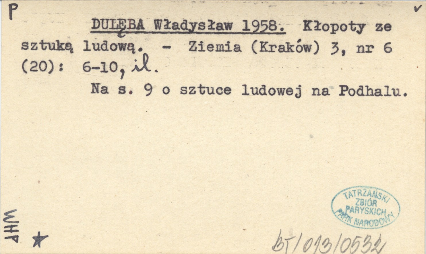 Ziemia (Kraków) , 3, nr 6 (20): 6-10, il. Na s. 9 o sztuce ludowej na Podhalu.