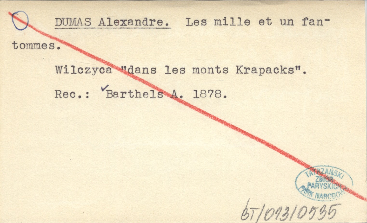 , Wilczyca "dans les monts Krapacks". REC: BARTHELS A. 1878