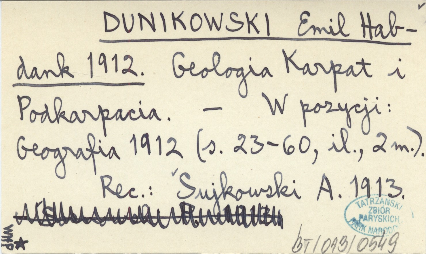 DUNIKOWSKI Emil Habdank 1912 Geologia Karpat i Podkarpacia.