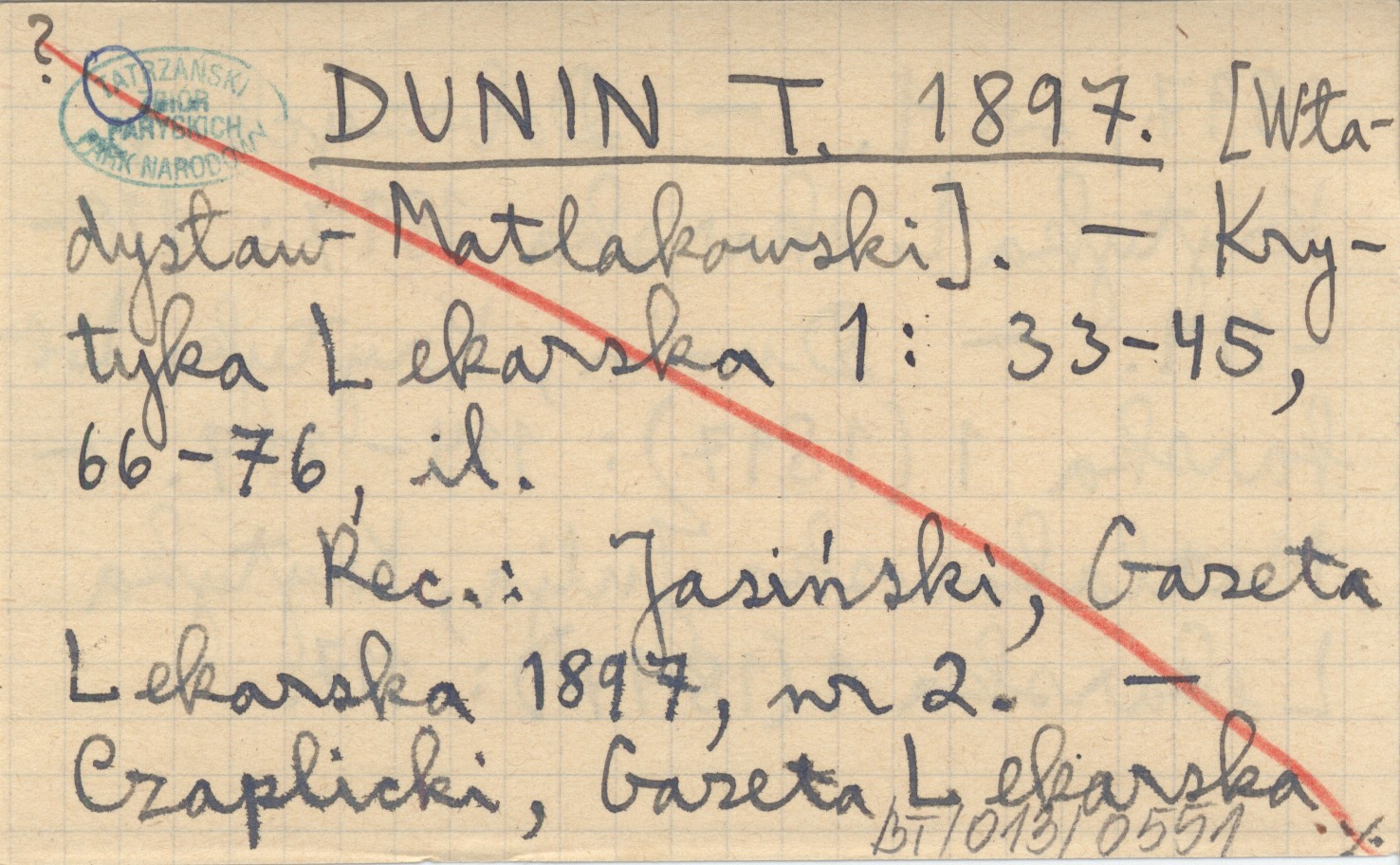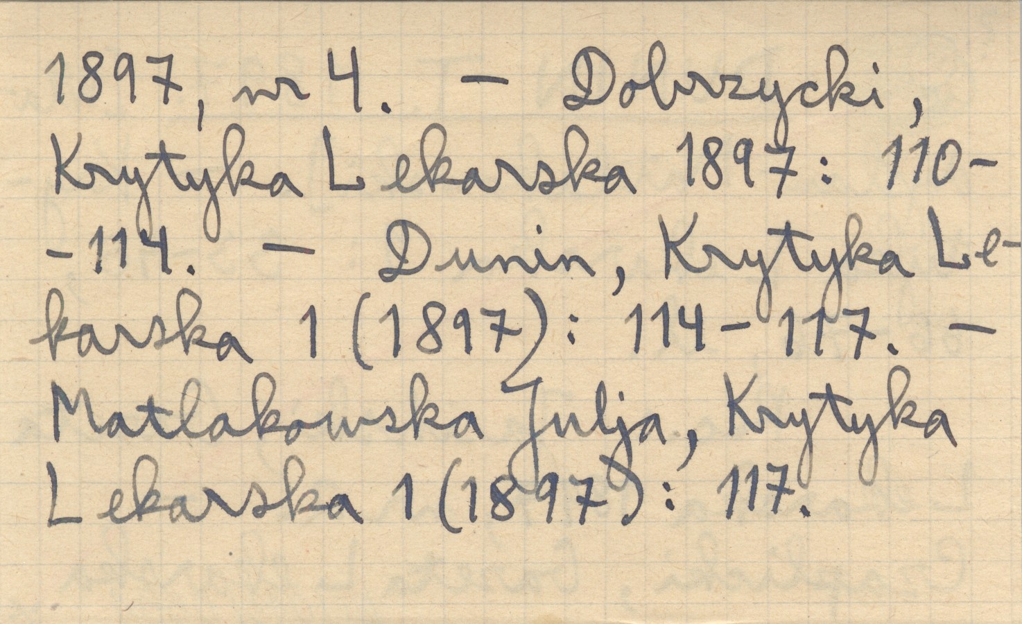 Krytyka Lekarska, 1: 33-45, 66-76, il. REC: JASIŃSKI, Gazeta Lekarska 1897, nr 2 ; CZAPLICKI, Gazeta Lekarska 1897, nr 4 ; DOBRZYCKI, Krytyka Lekarska 1897: 110-114. ; DUNIN, Krytyka Lekarska 1(1897): 114-117. ; MATLAKOWSKA Julja, Krytyka Lekarska 1 (1897): 117.