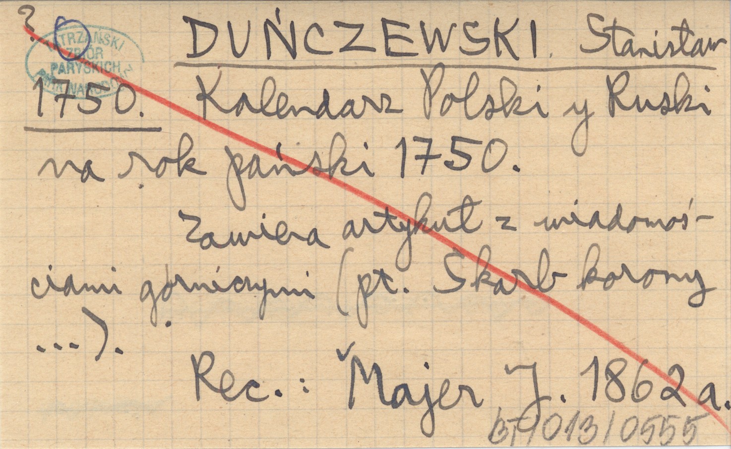 DUŃCZEWSKI Stanisław 1750 Kalendarz Polski y Ruski na rok pański 1750.