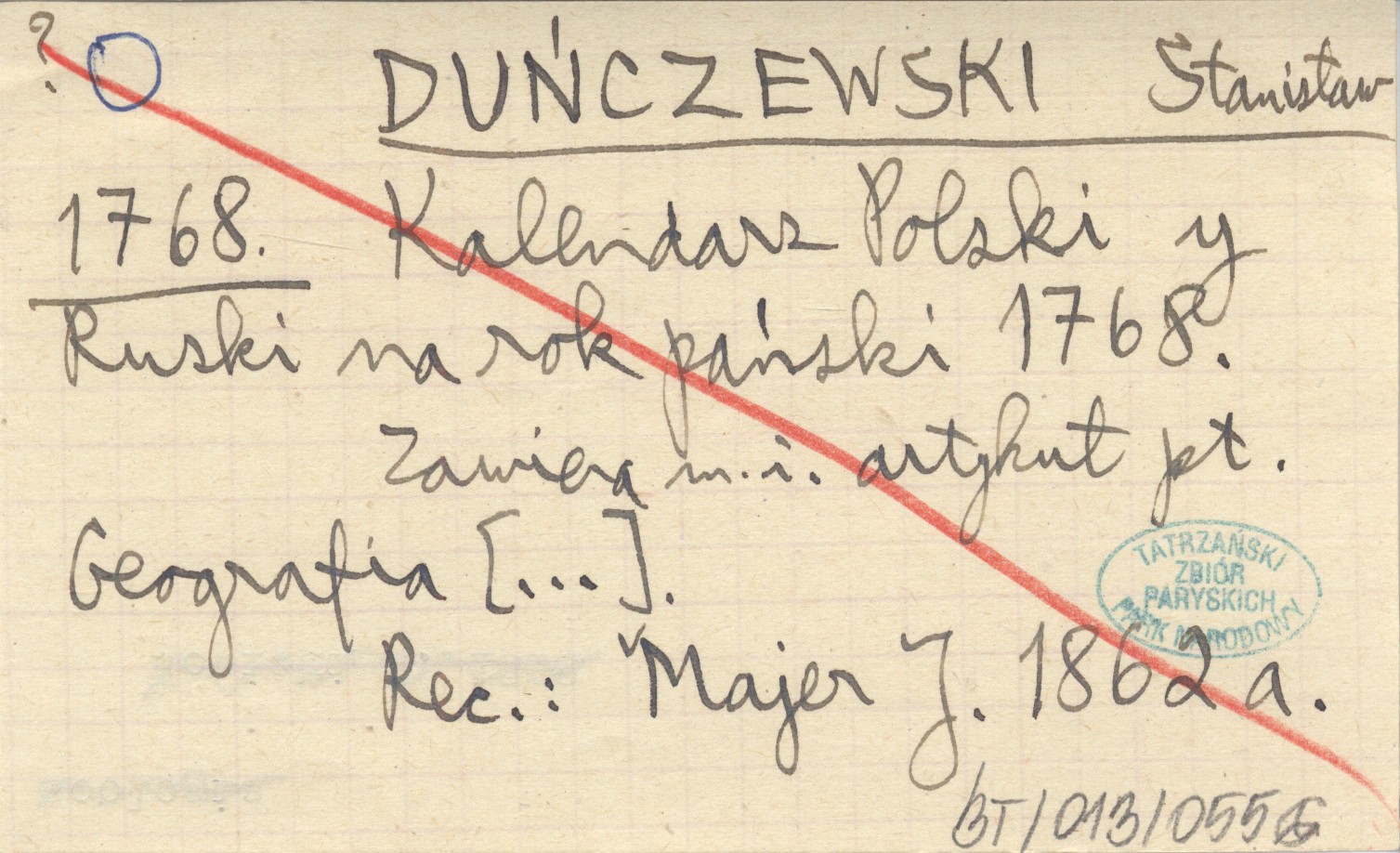 DUŃCZEWSKI Stanisław 1768 Kalendarz Polski y Ruski na rok pański 1768.