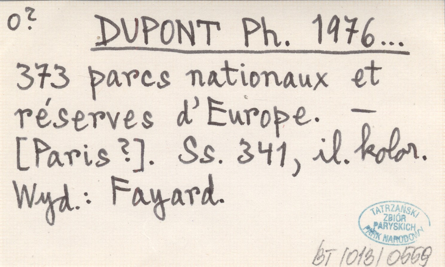 DUPONT Ph. 1976... 373 parcs nationaux et réserves d'Europe.