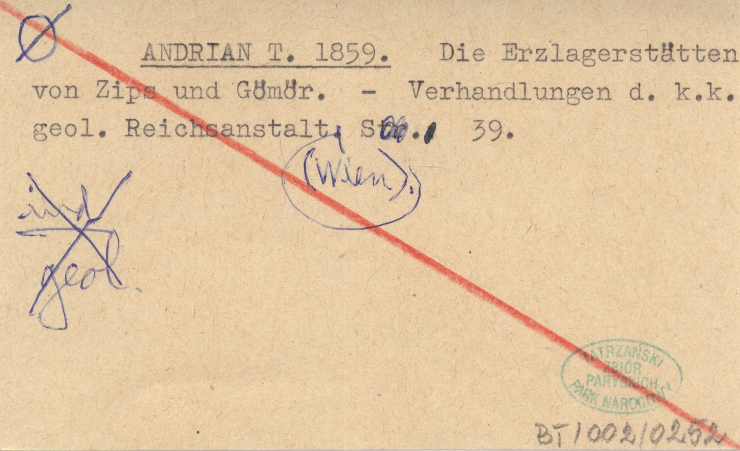 ANDRIAN T. 1859 Die Erzlagerstätten von Zips und Gömör.
