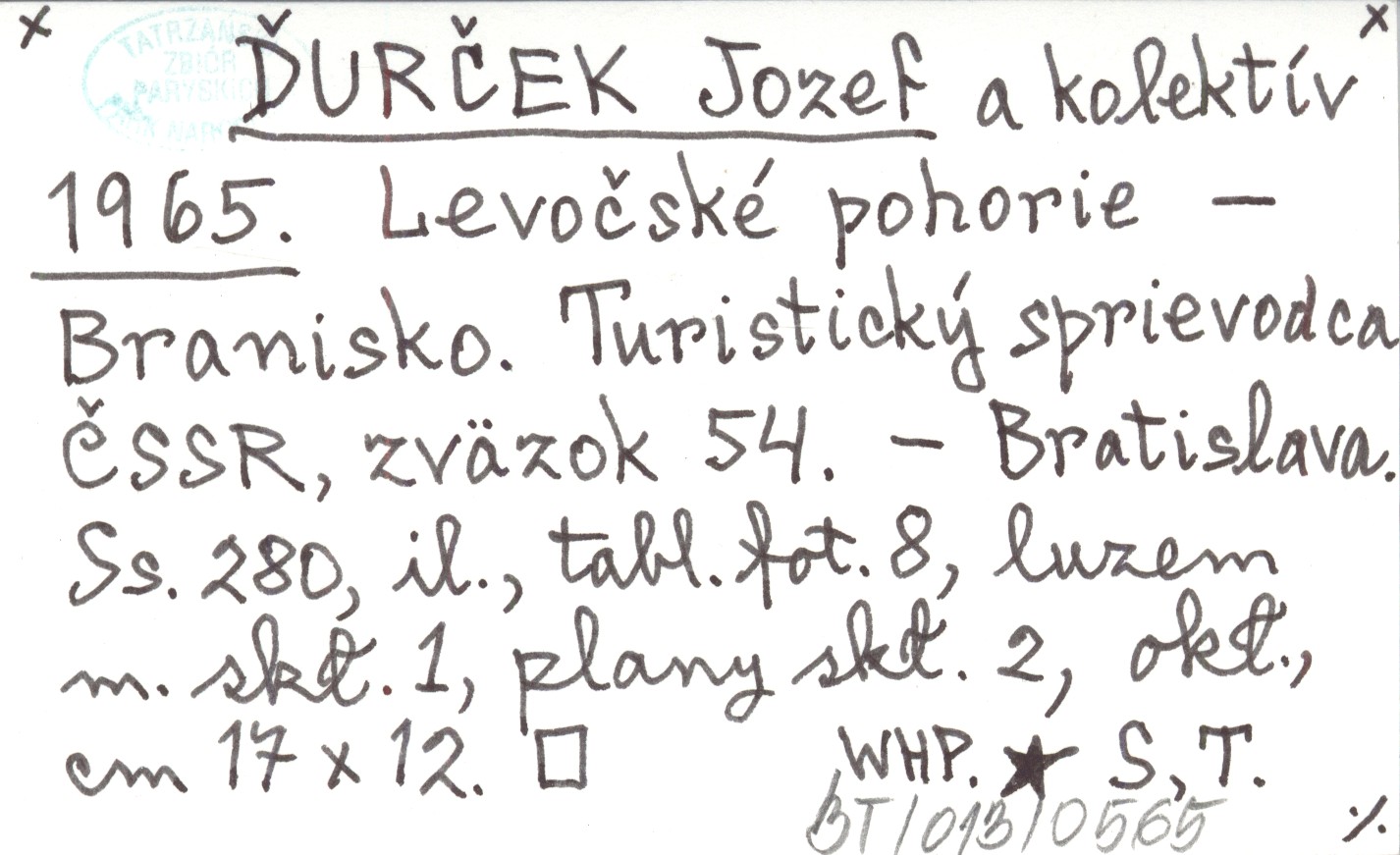 ĎURČEK Jozef i in. ; 1965 Levočské pohorie - Branisko. Turistický sprievodca ČSSR, zväzok 54.