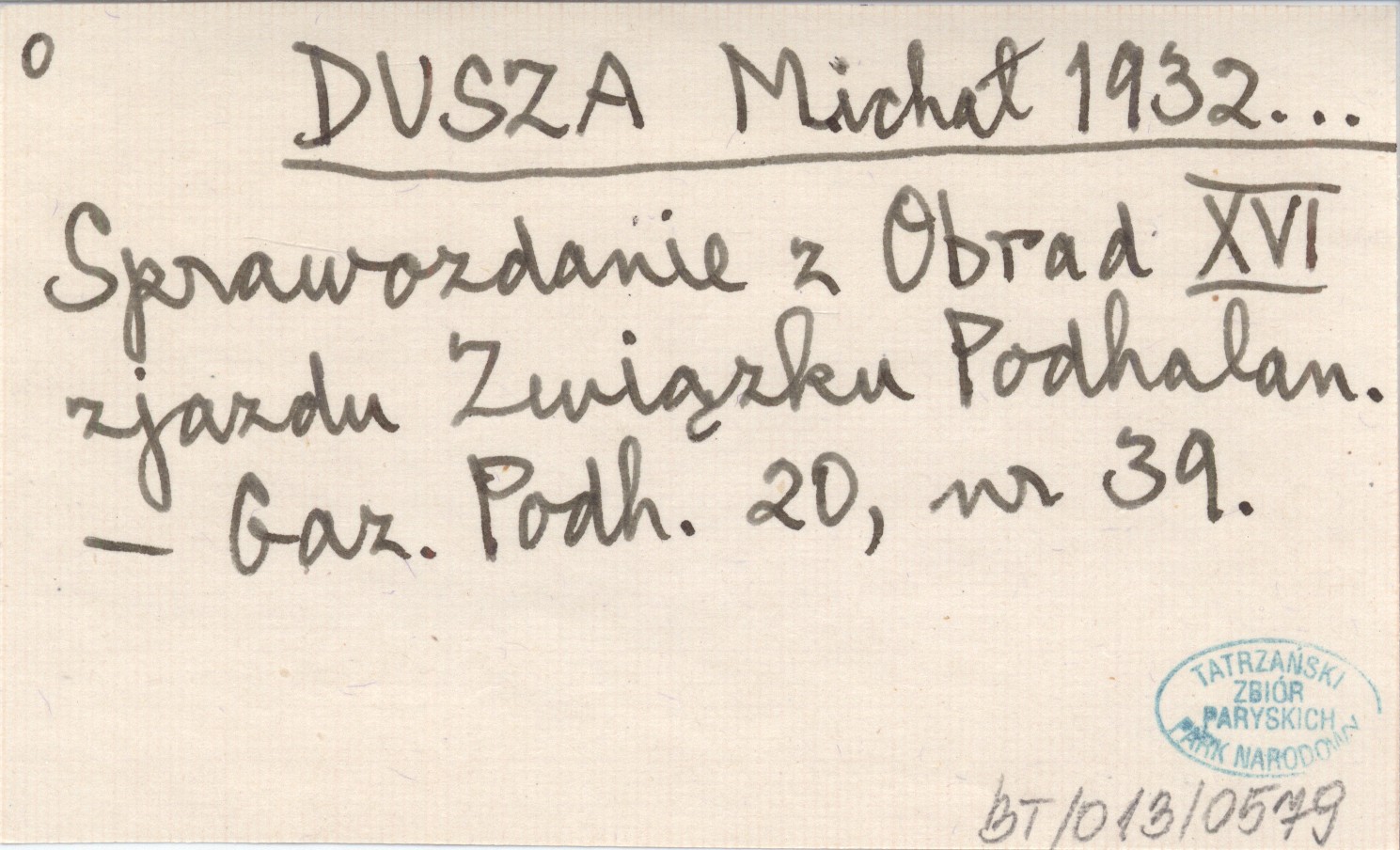 DUSZA Michał 1932... Sprawozdanie z Obrad XVI zjazdu Związku Podhalan.