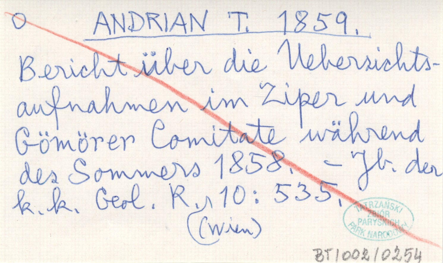 ANDRIAN T. 1959 Bericht über die Uebersichtsaufnahmen im Ziper und Gömörer Comitate während des Sommers 1858.