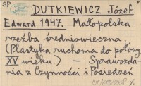 DUTKIEWICZ Józef Edward 1949 Ma³opolska rze¼ba ¶redniowieczna 1300-1450.