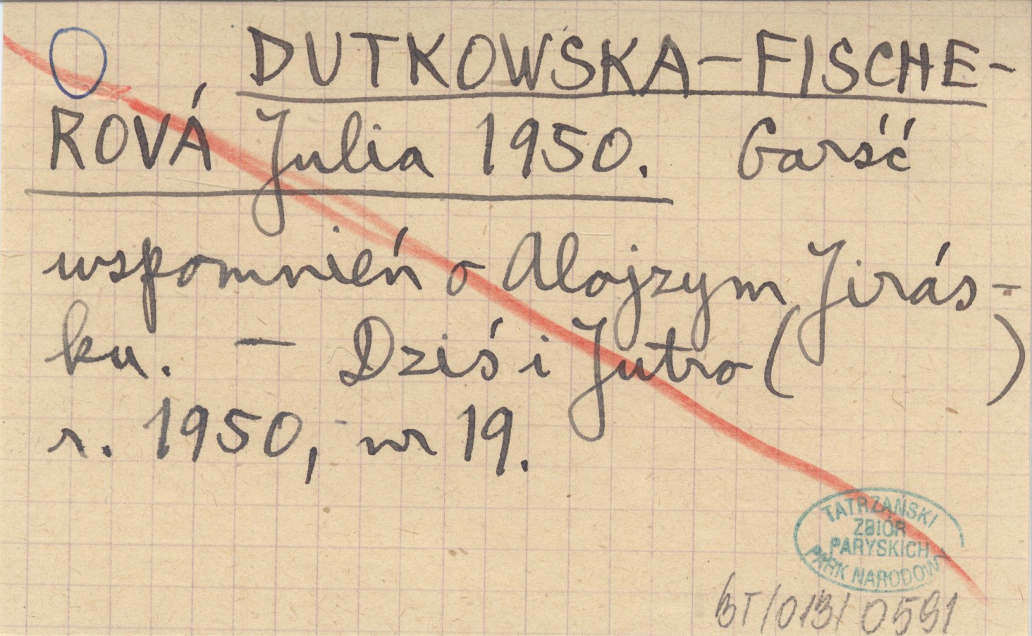 DUTKOWSKA-FISCHEROVÁ Julia 1950 Garść wspomnień o Alojzym Jirásku.