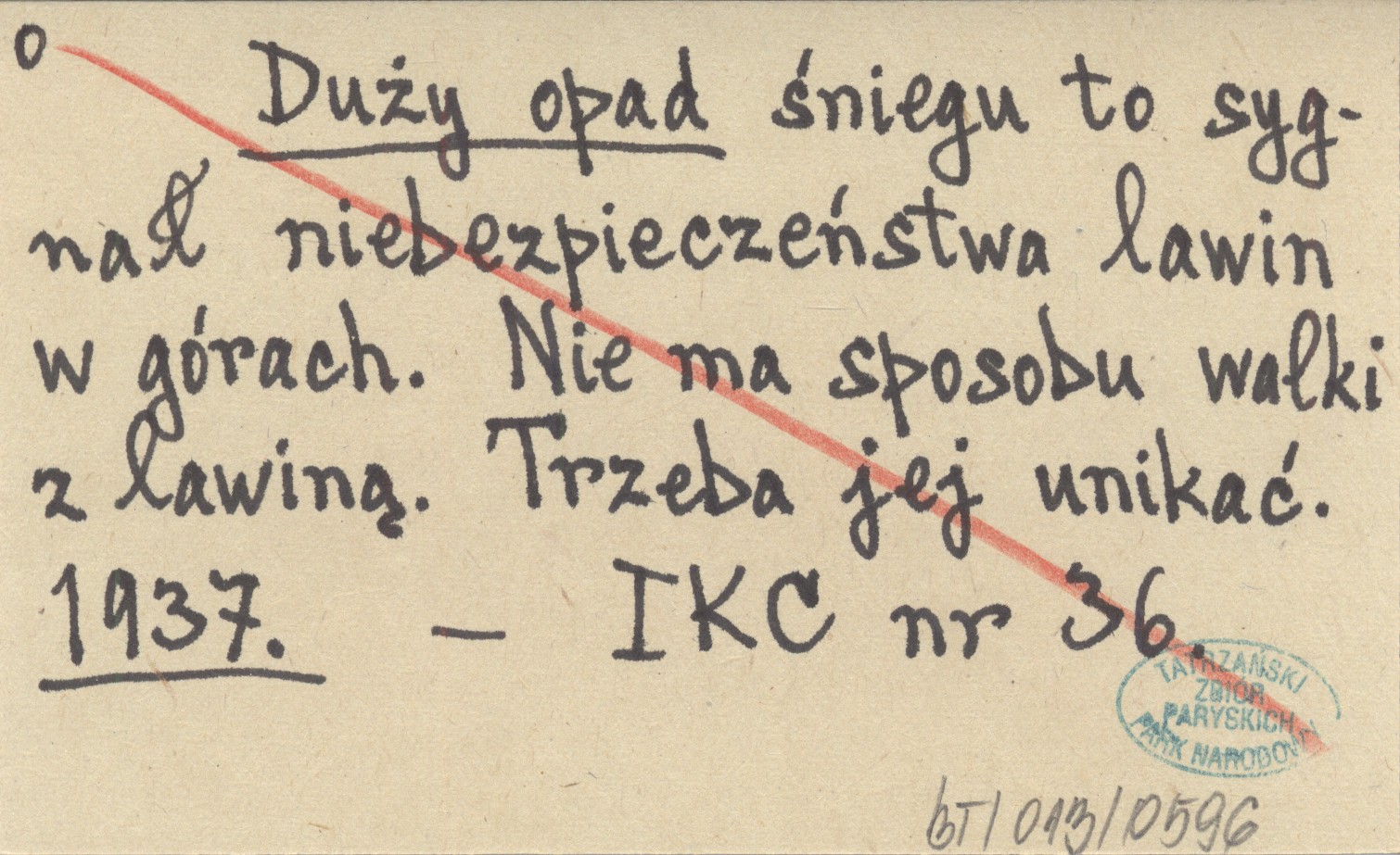 Duży opad śniegu to sygnał niebezpieczeństwa lawin w górach. Nie ma sposobu walki z lawiną. Trzeba jej unikać. 1937