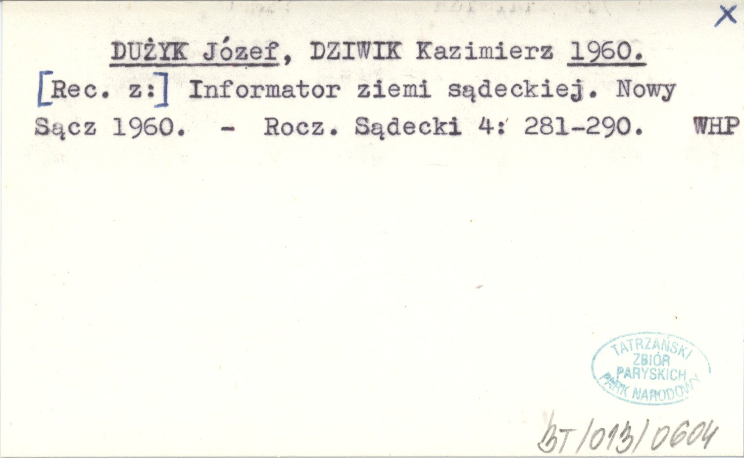 DUŻYK Józef DZIWIK, Kazimierz. ; 1960 [Rec. z:] Informator ziemi sądeckiej. Nowy Sącz 1960.