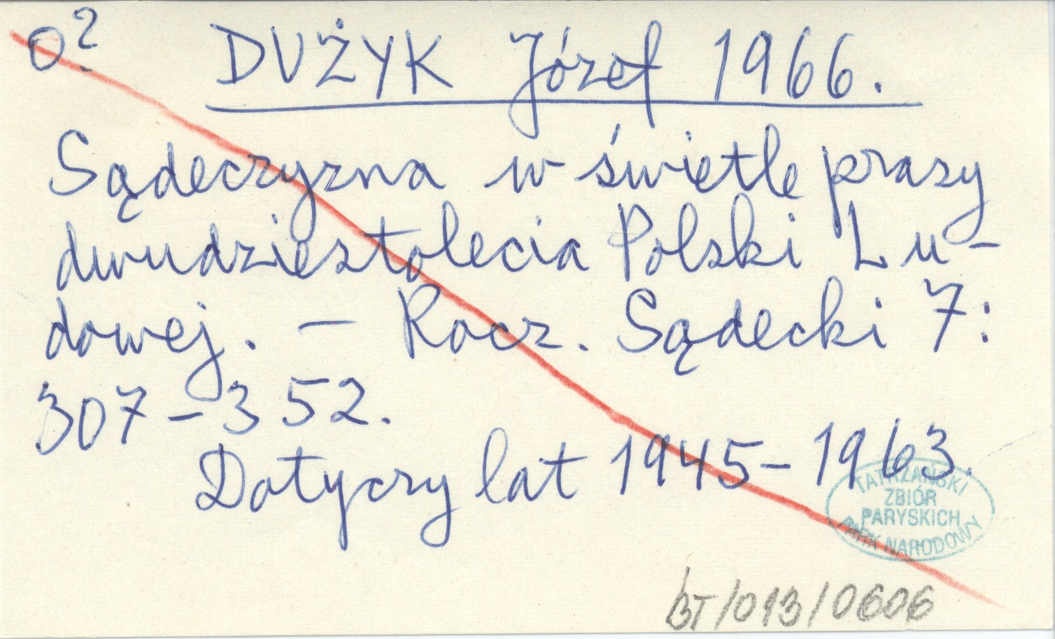 Rocznik Sądecki, 7: 307-352. Dotyczy lat 1945-1963.