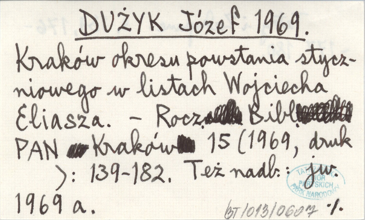 Rocznik Biblioteki Polskiej Akademii Nauk (Kraków) , 15 (1969): 139-182. Tatry i Zakopane: s. 139, 176-177, 180. Też nadb.: jw. 1969 a
