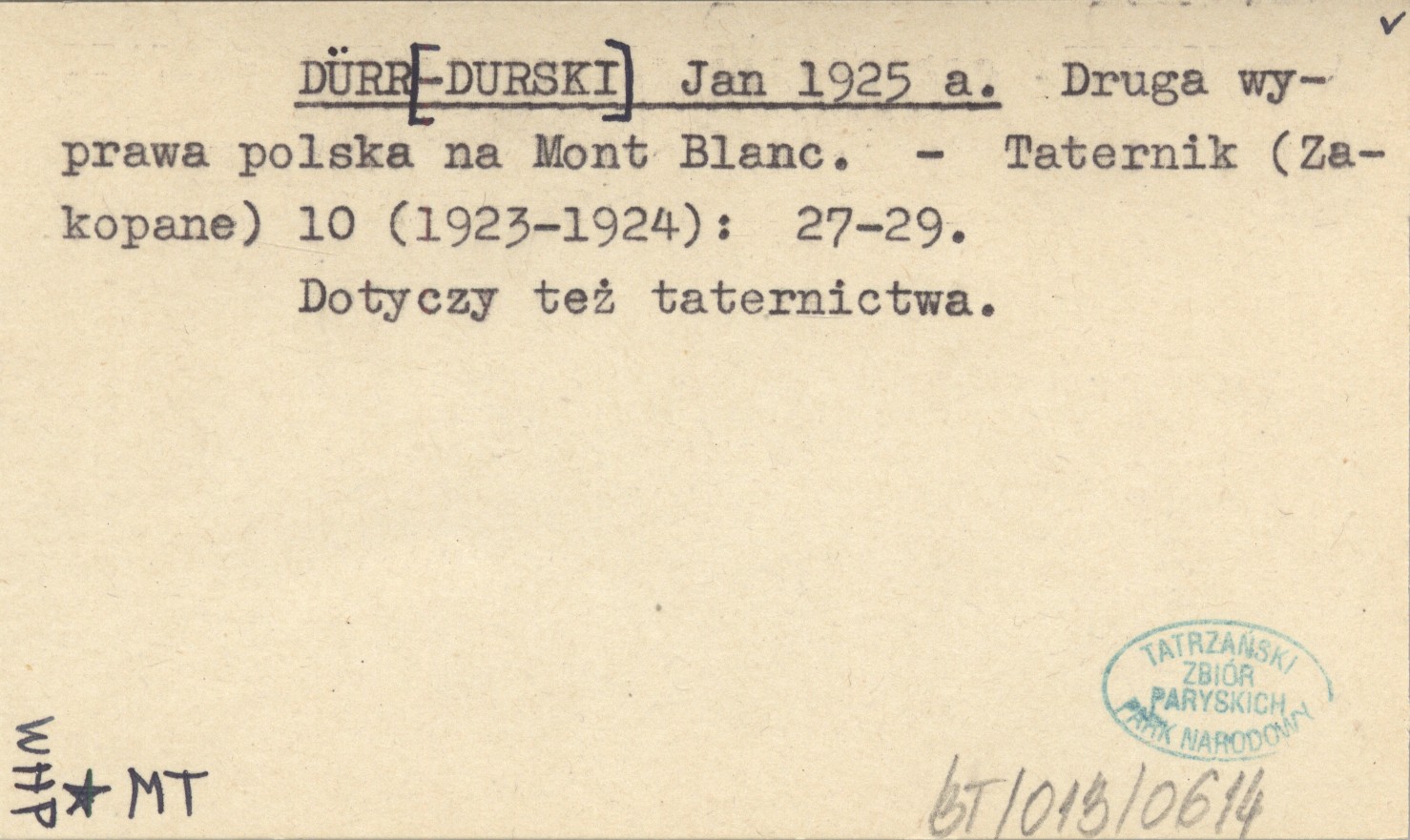 DÜRR[-DURSKI] Jan 1925 a Druga wyprawa polska na Mont Blanc.