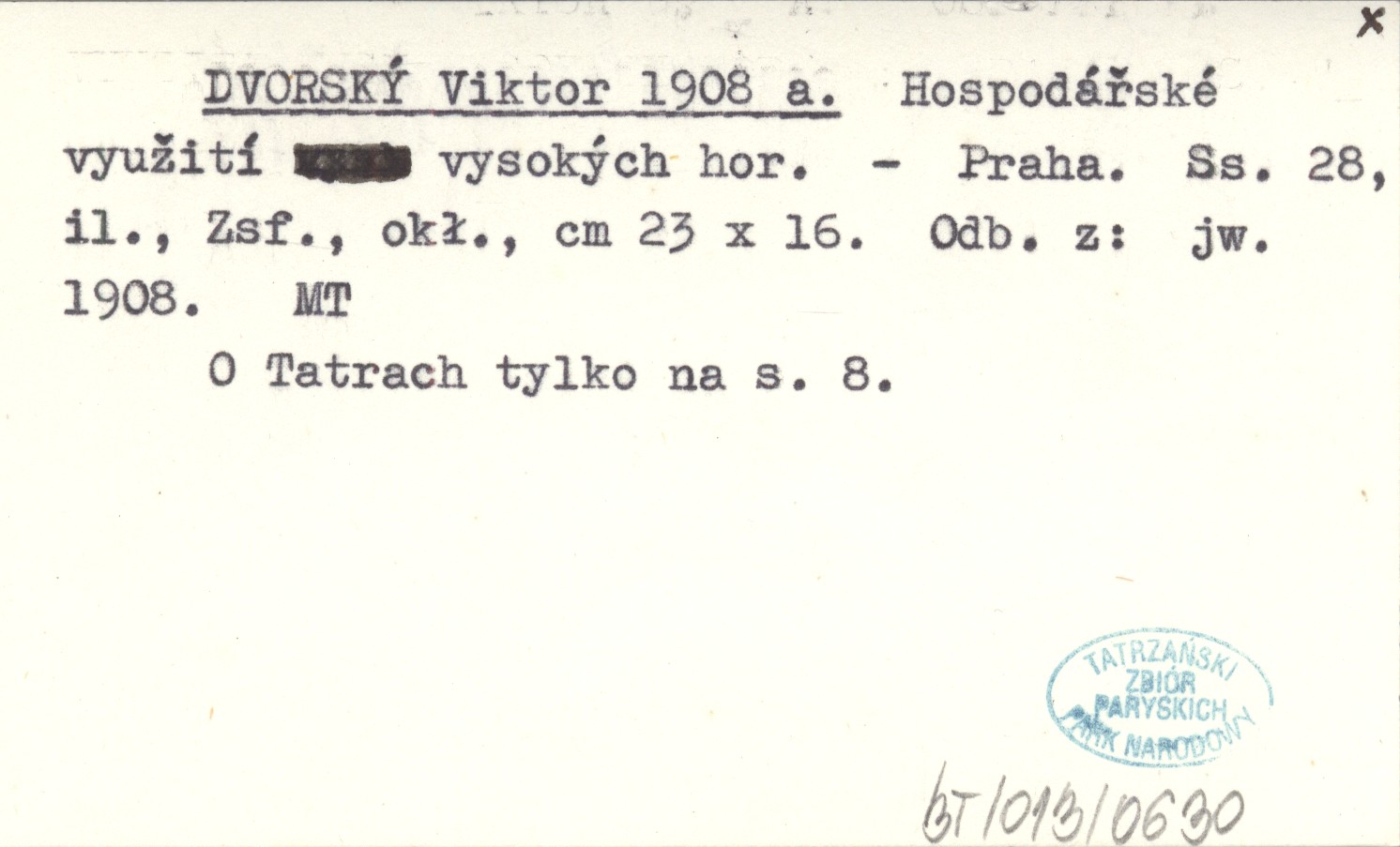 Praha , 28 s., il., Zsf., okł., 23x16 cm. O Tatrach tylko na s. 8. Odb. z: jw. 1908.