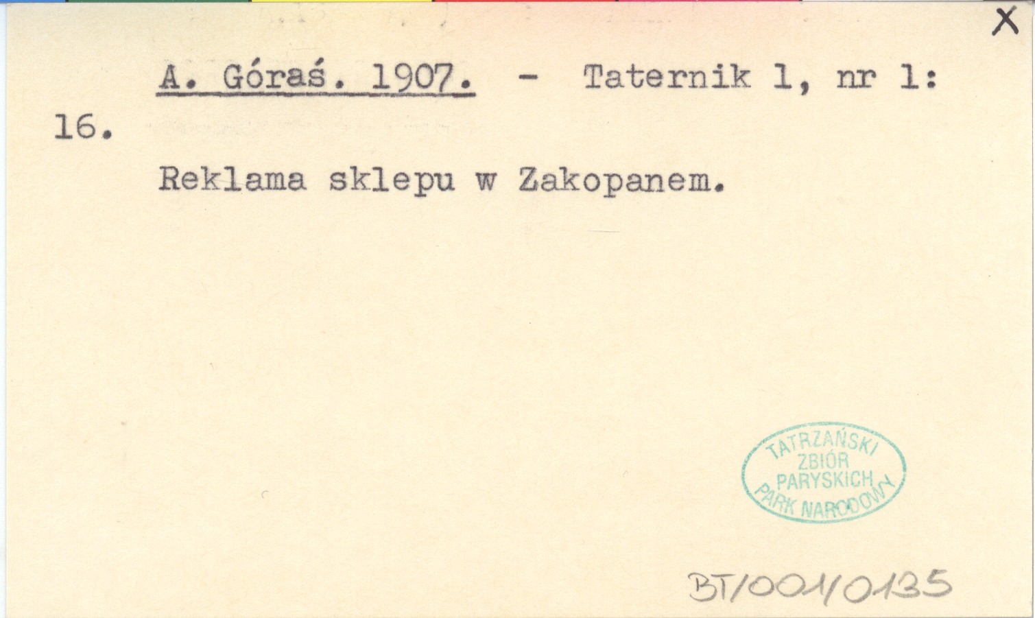 Taternik, 1, nr 1: 16. Reklama sklepu w Zakopanem.