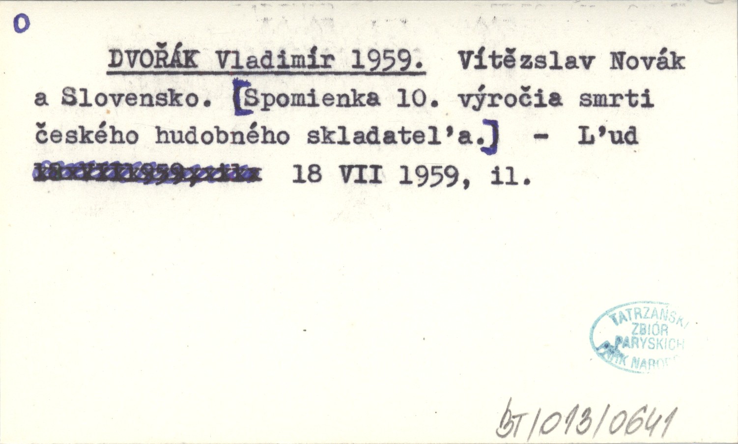 DVOŘÁK Vladimír 1959 Vítězslav Novák a Slovensko. [Spomienka 10. výročia smrti českého hudobného skladateµa.]