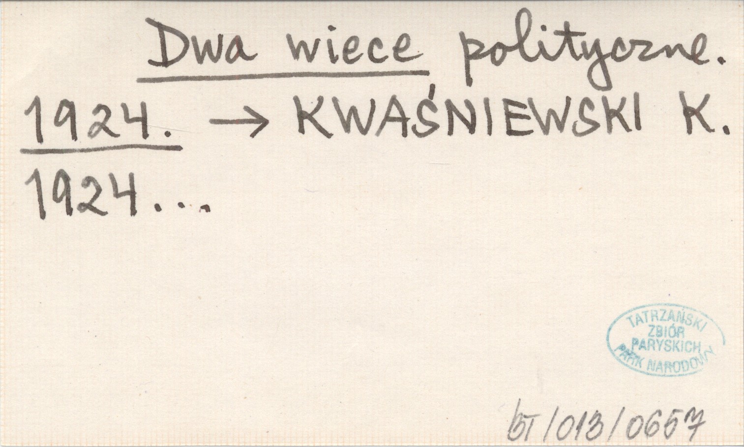 KWAŚNIEWSKI K. 1924...