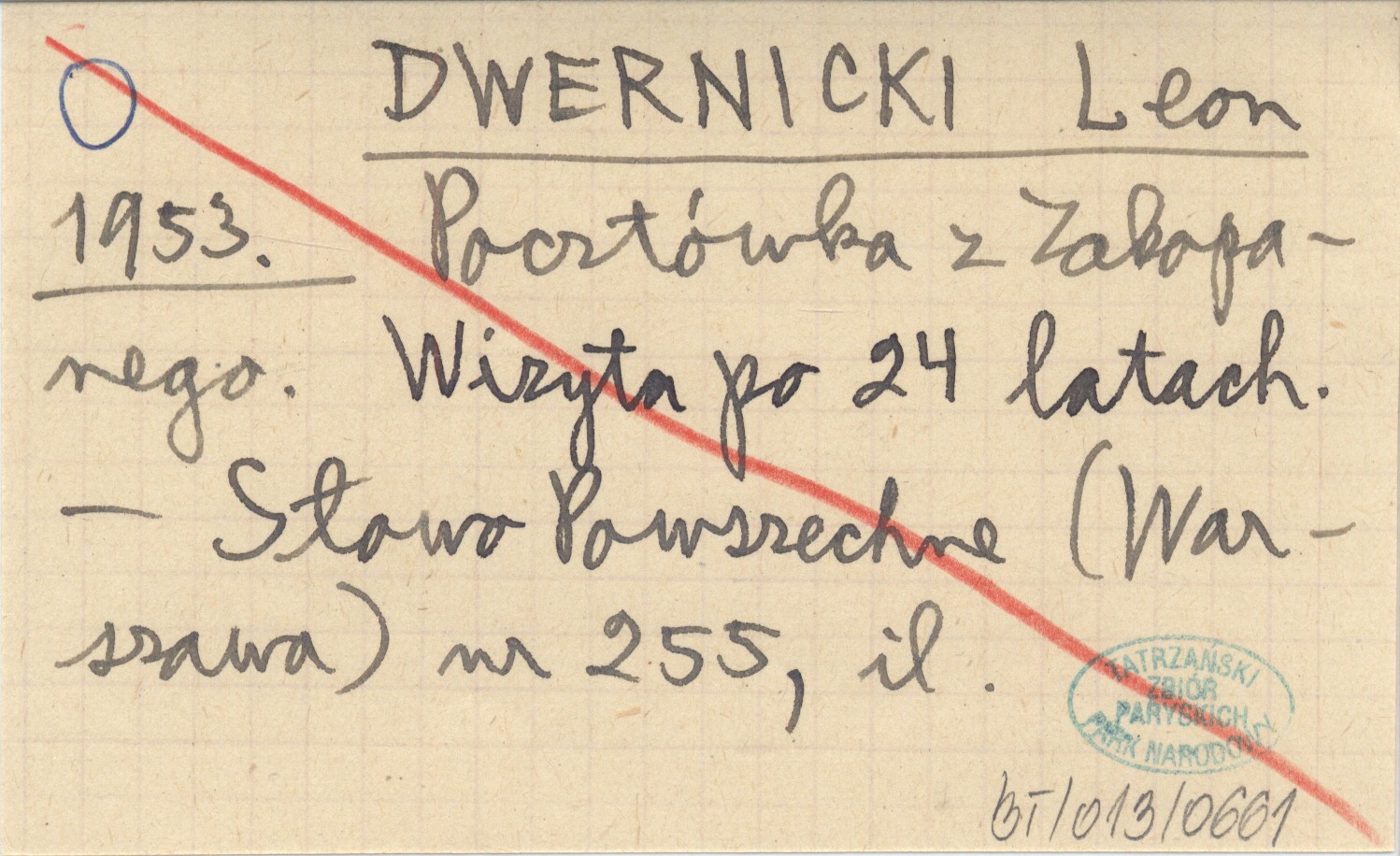 DWERNICKI Leon 1953 Pocztówka z Zakopanego. Wizyta po 24 latach.