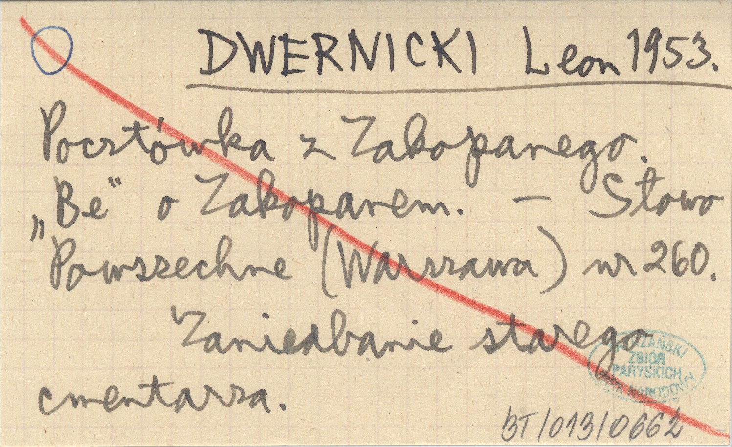 DWERNICKI Leon 1953 Pocztówka z Zakopanego. "Be" o Zakopanem.