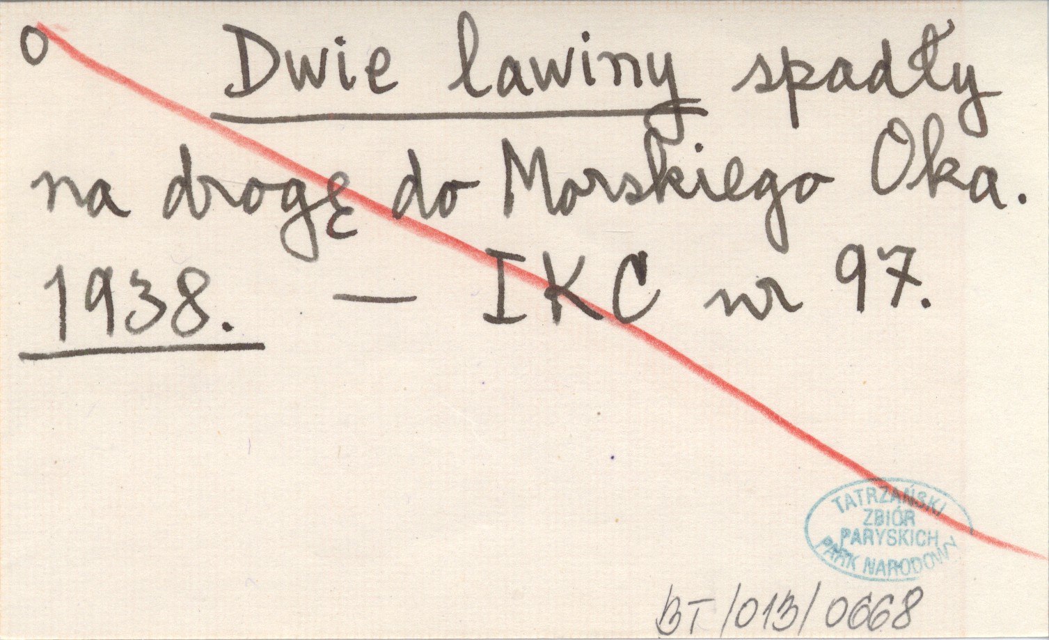 Dwie lawiny spadły na drogę do Morskiego Oka. 1938