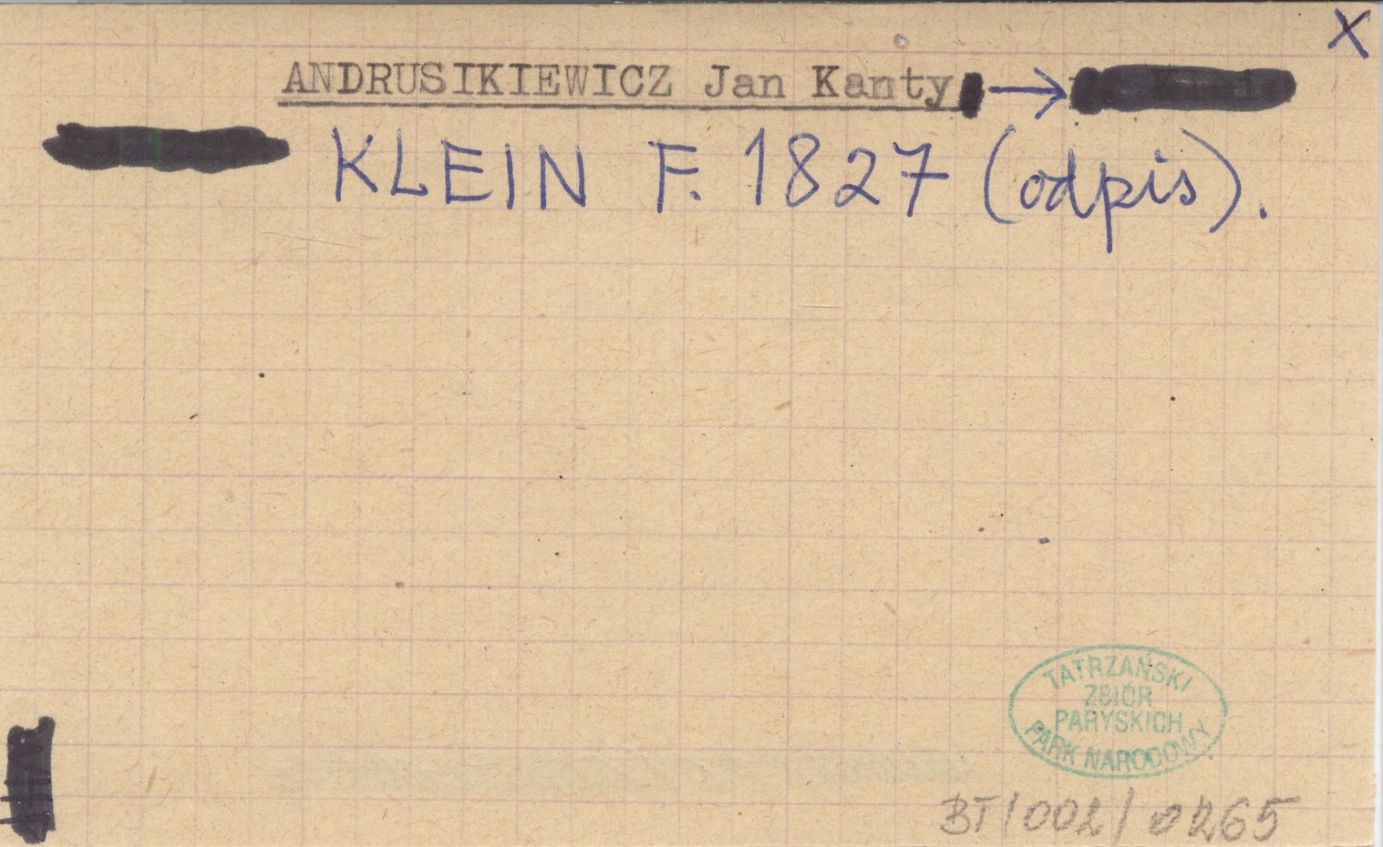 KLEIN F. 1827 (odpis)