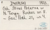 DWORSKI 1933... Och. Straż Pożarna w N. Targu. Rozkaz nr. 8.