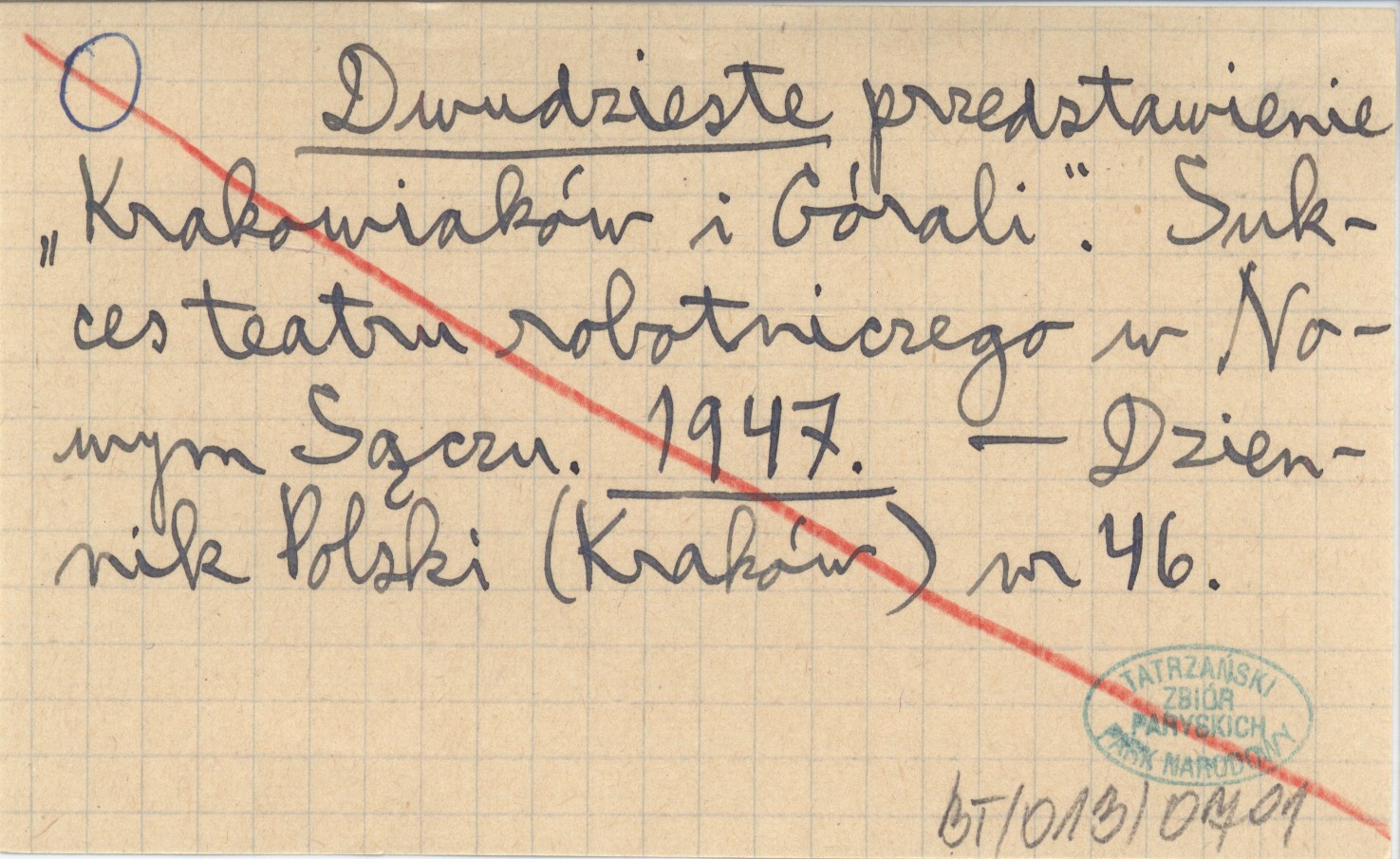 Dwudzieste przedstawienie "Krakowiaków i Górali". Sukces teatru robotniczego w Nowym Sączu. 1947