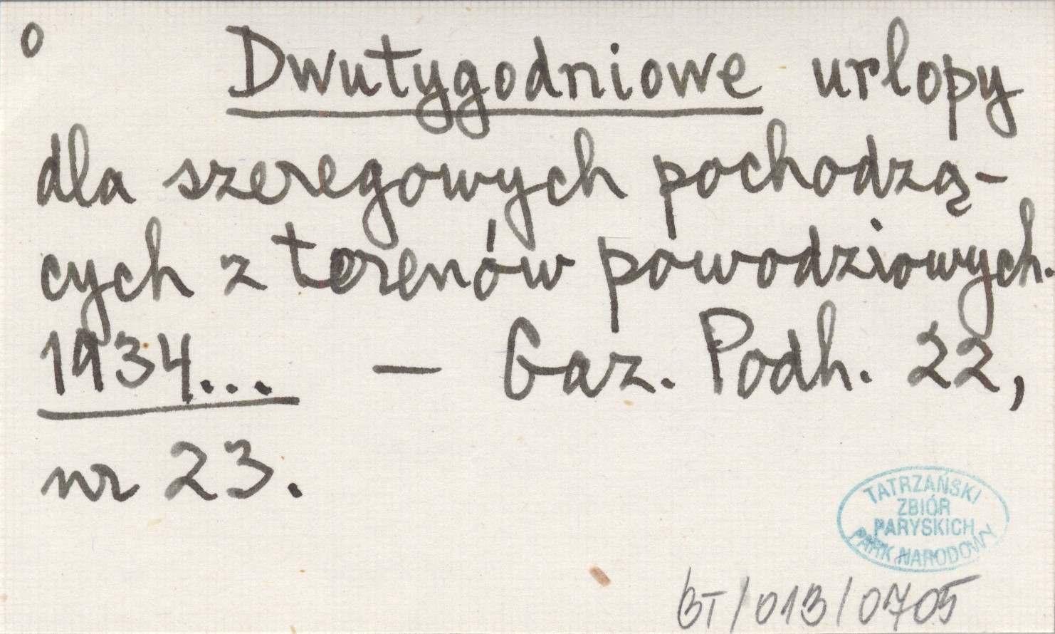 Dwutygodniowe urlopy dla szeregowych pochodzących z terenów powodziowych. 1934...